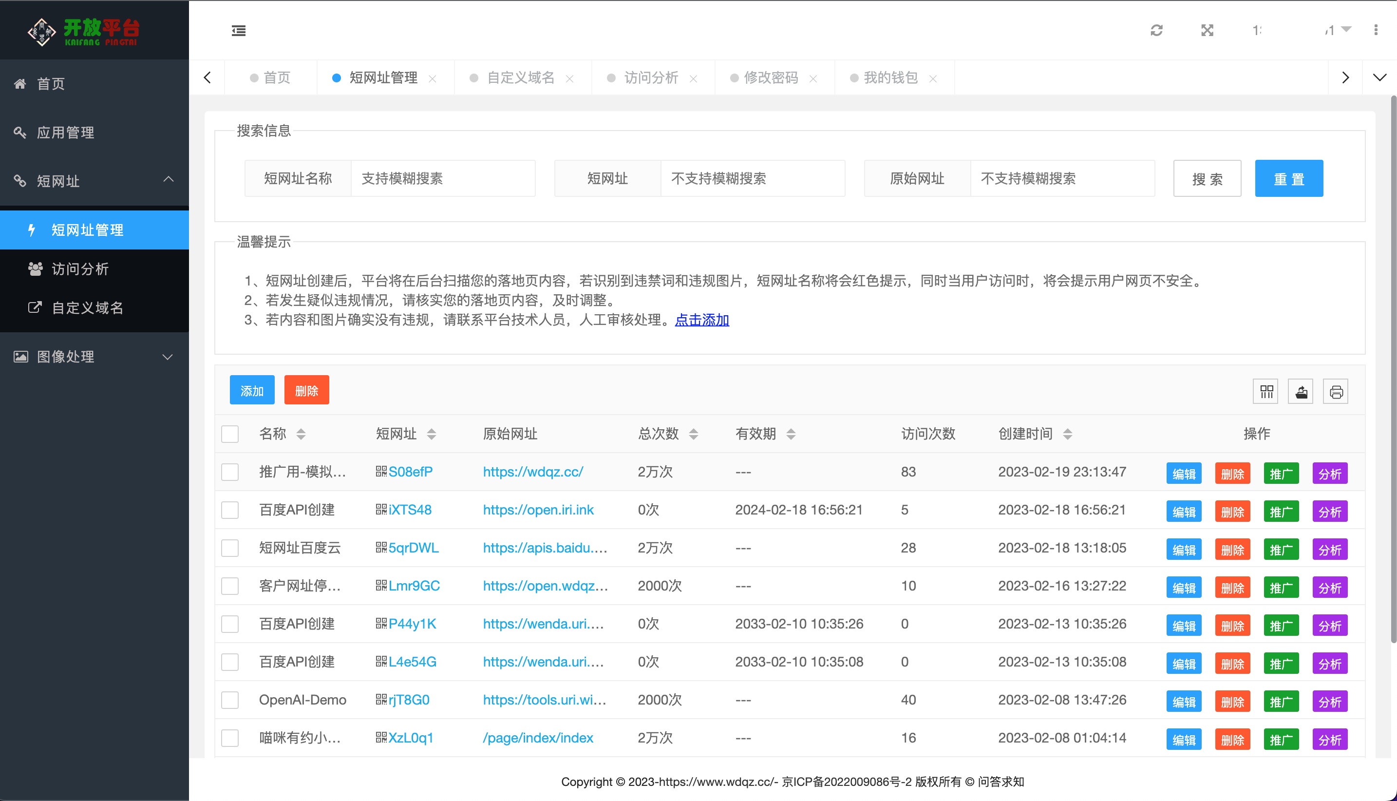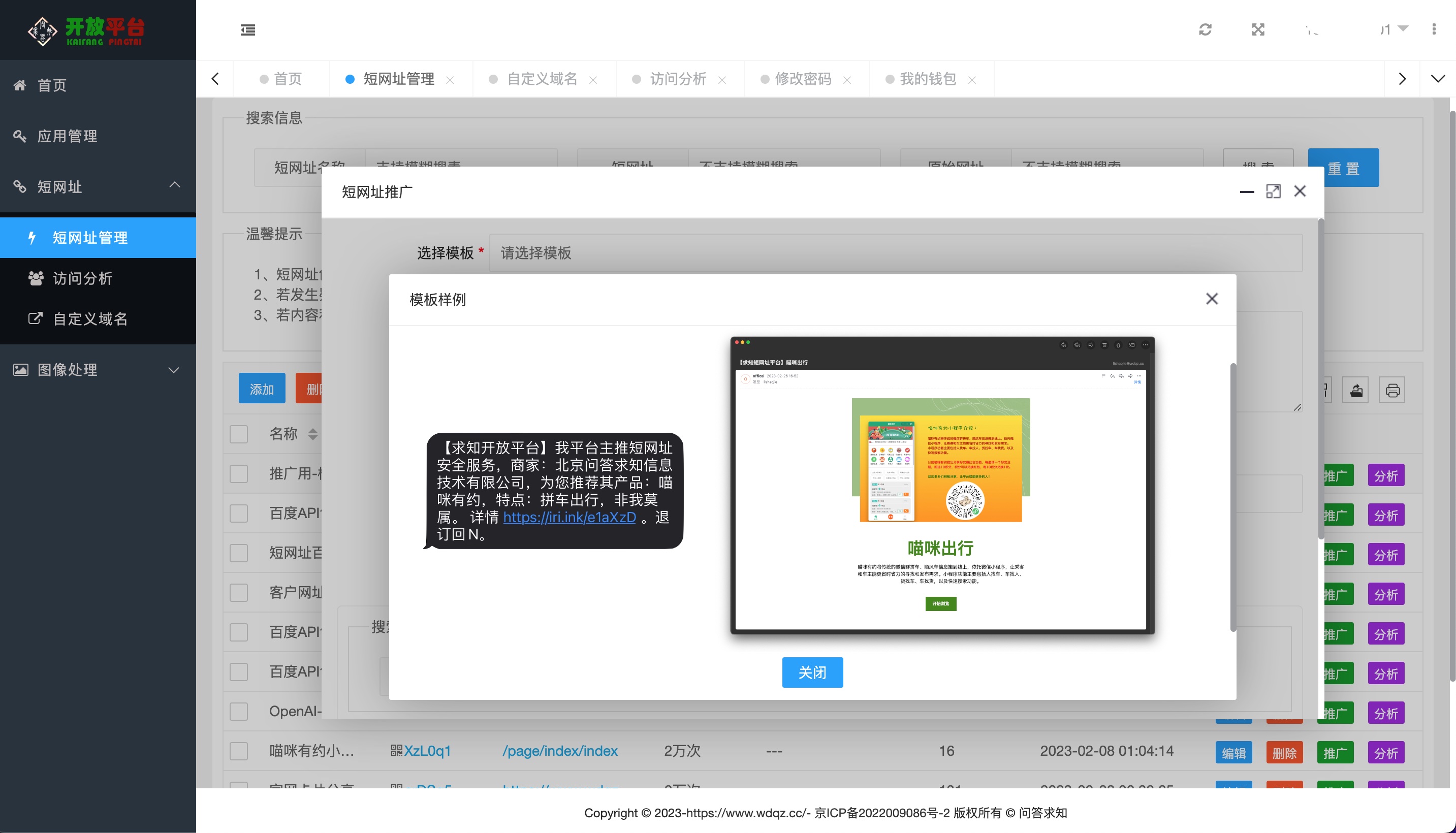 问答求知 2022 年于北京成立,并由一家初期从事知识付费的互联网公司,发展为现在具有自主研发能力的科技公司,多个产品已上线为大众服务。超级短网址作为主打产品,已经支持短网址创建、多维度报表统计、报表导出、微信卡片分享、小程序跳转等功能。同时还支持在平台内一站式完成短信、邮件推广!