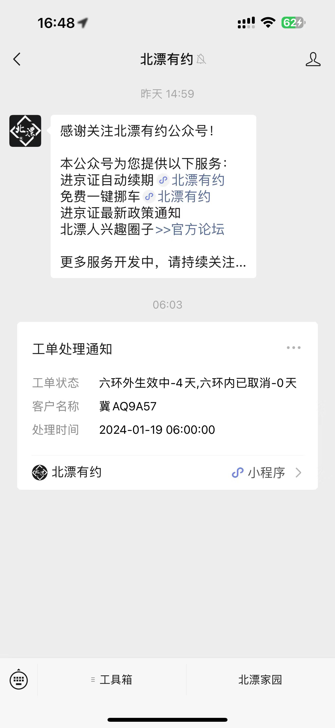 访问入口:北漂有约公众号 -> 底部菜单:进京证