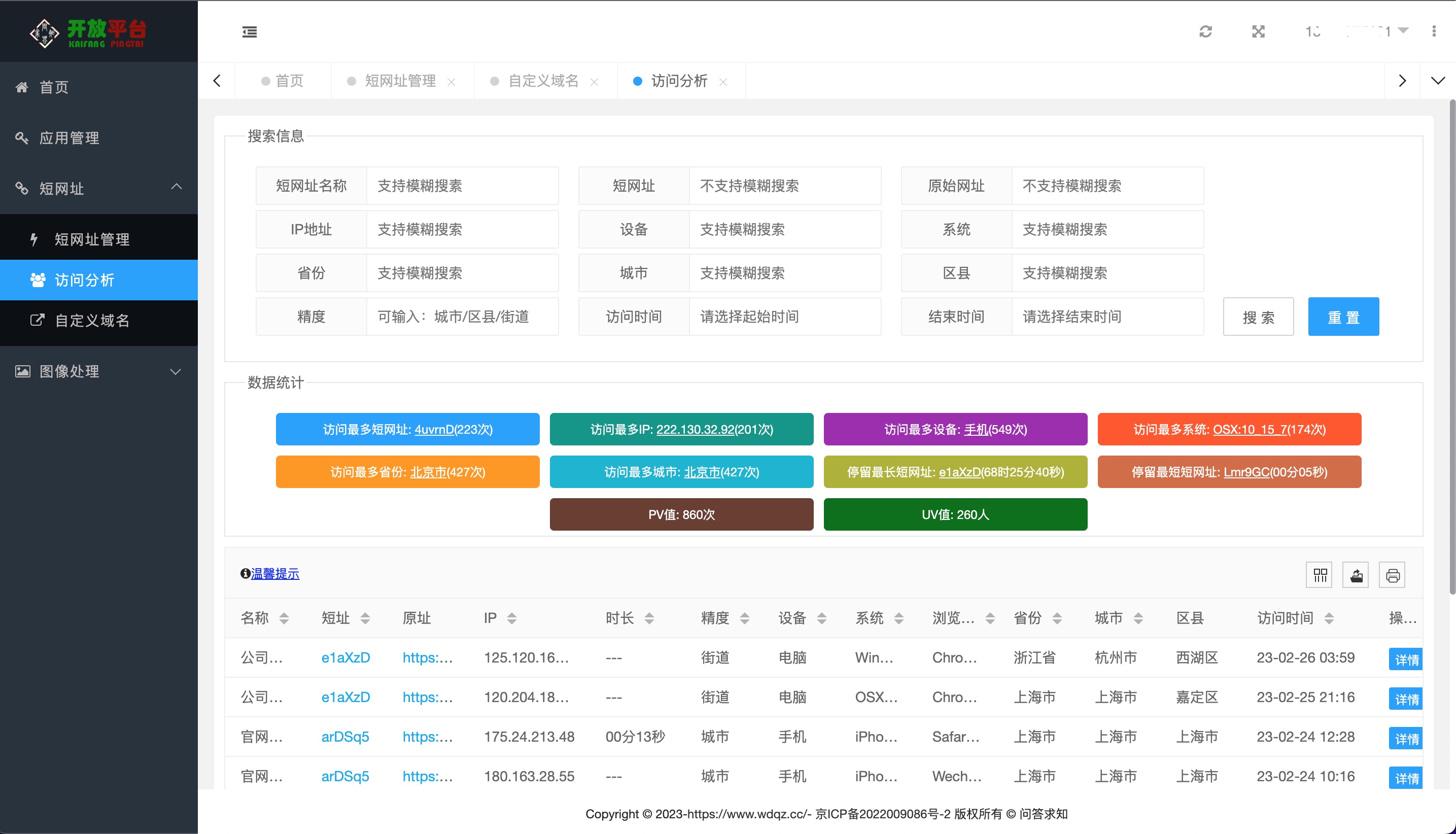 问答求知 2022 年于北京成立,并由一家初期从事知识付费的互联网公司,发展为现在具有自主研发能力的科技公司,多个产品已上线为大众服务。超级短网址作为主打产品,已经支持短网址创建、多维度报表统计、报表导出、微信卡片分享、小程序跳转等功能。同时还支持在平台内一站式完成短信、邮件推广!