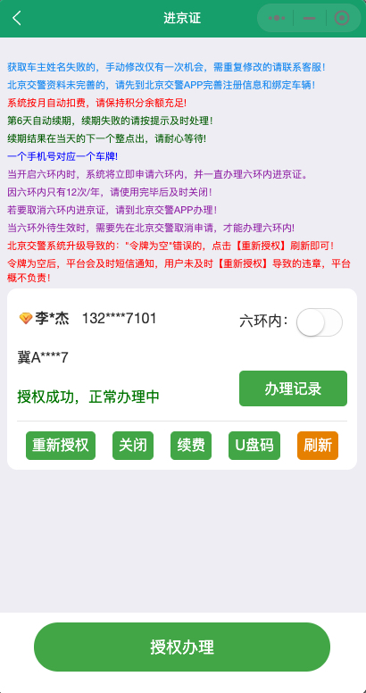 六环外进京证自动续期